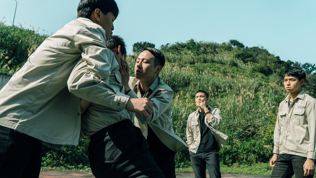 There are different kinds of queer stories out there. A Lock with No Key (把風, literally “Lookout”) isn’t about love, exactly, or the prettier, more progressive side of Taiwanese society that the country likes to showcase to the outside world. The 2019 short film, recently released on GagaOOlala, is about a group of restless young punks who revel in mercilessly, violently bullying a high-school classmate, Ch’ien Wan-ta, and about the eponymous lookout of the group, Ch’en Chen-k’ang, who is drawn to this tight-lipped target for reasons he doesn’t quite seem to understand or accept. His various attempts to reach out or get closer to Ch’ien Wan-ta are almost always translated into the vernacular of taunts, the only language his friend group speaks, and thus fall flat. While he repeatedly intervenes to lessen the punishments doled out to him in ways that no one else can see, Ch’en Chen-k’ang never stops them—that is, until it’s finally the enabler’s turn to hit or get hit.